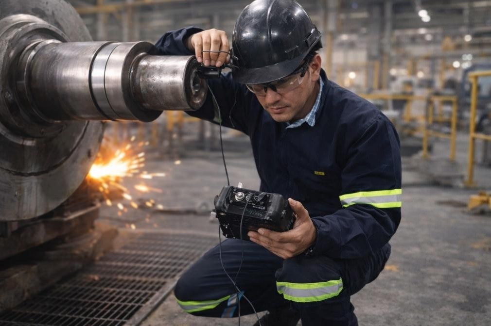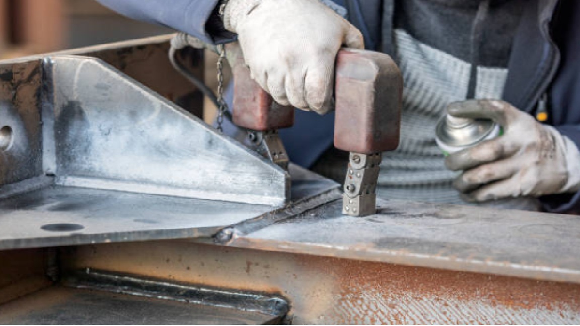 Inspección de sistemas de izaje por medio de partículas magnéticas para detectar grietas generadas por la fatiga mecánica.
